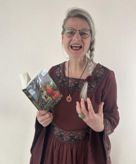 Autorin in Gewandung