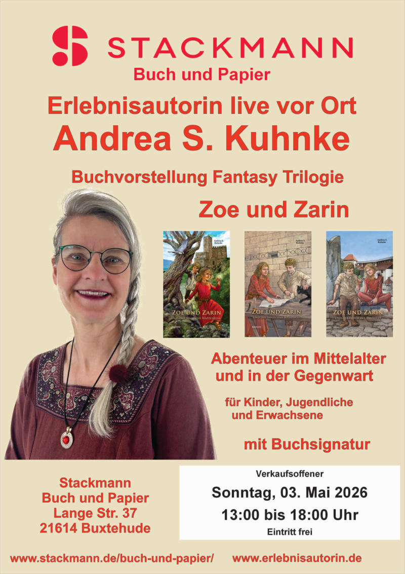 Verkaufsoffener Sonntag 03. Mai 2026 Märchentage! Stackmann Buch & Papier, Buxtehude Live vor Ort - Buchvorstellung mit Buchsignierung von 13:00 bis 18:00 Uhr Lange Str. 37 21614 Buxtehude